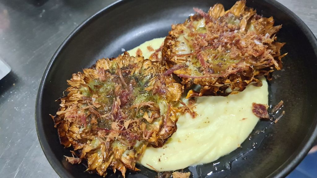 alcachofas CONFITADAS CON TRUFA Y JAMÓN