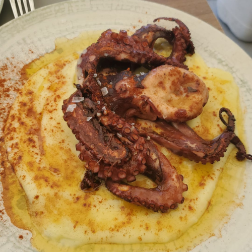 PULPO ENTERO CON PARMENTIE Y ACEITE PIMENTÓN