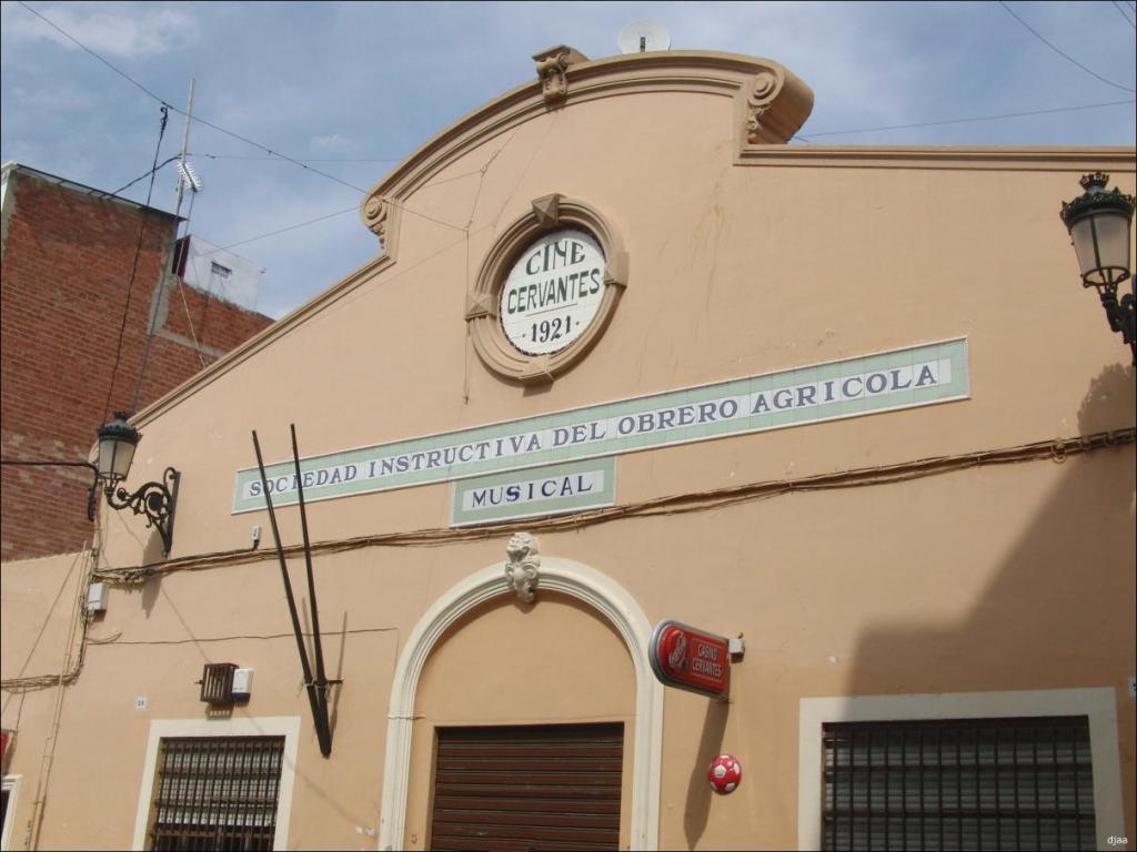 Sobre la parcela se levantó un edificio que articulaba la sede en dos espacios, una sala para lugar de reunión y bar (Casino) y otra sala dedicada a la actividad de cine, en ambos casos las salas recibieron el nombre de Casino Cervantes y Cine Cervantes.